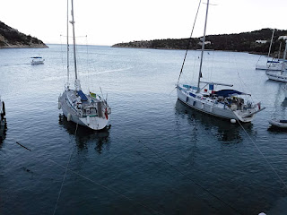 Mind you, we also began to drag when anchored in a very sheltered bay with little wind. Sitting in a little café on the quay having lunch, we began to realise that the boat was gradually getting further away than it had been. Never has a restaurant bill been paid so quickly.